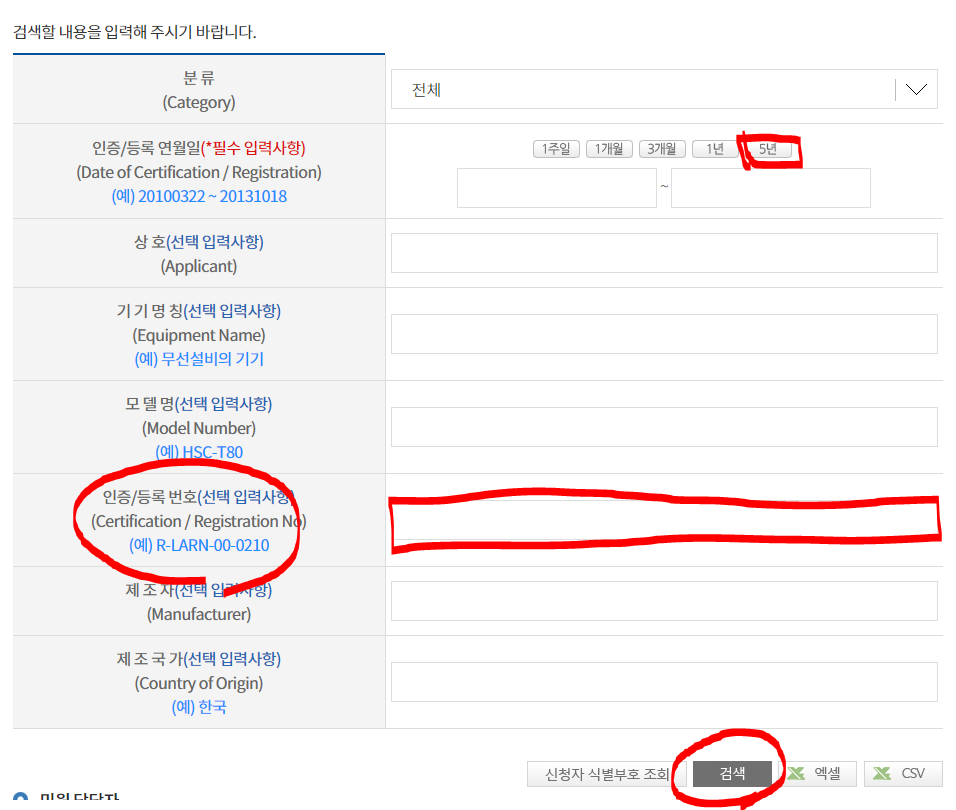 적합성인증번호로 검색을 하실 수가 있습니다.