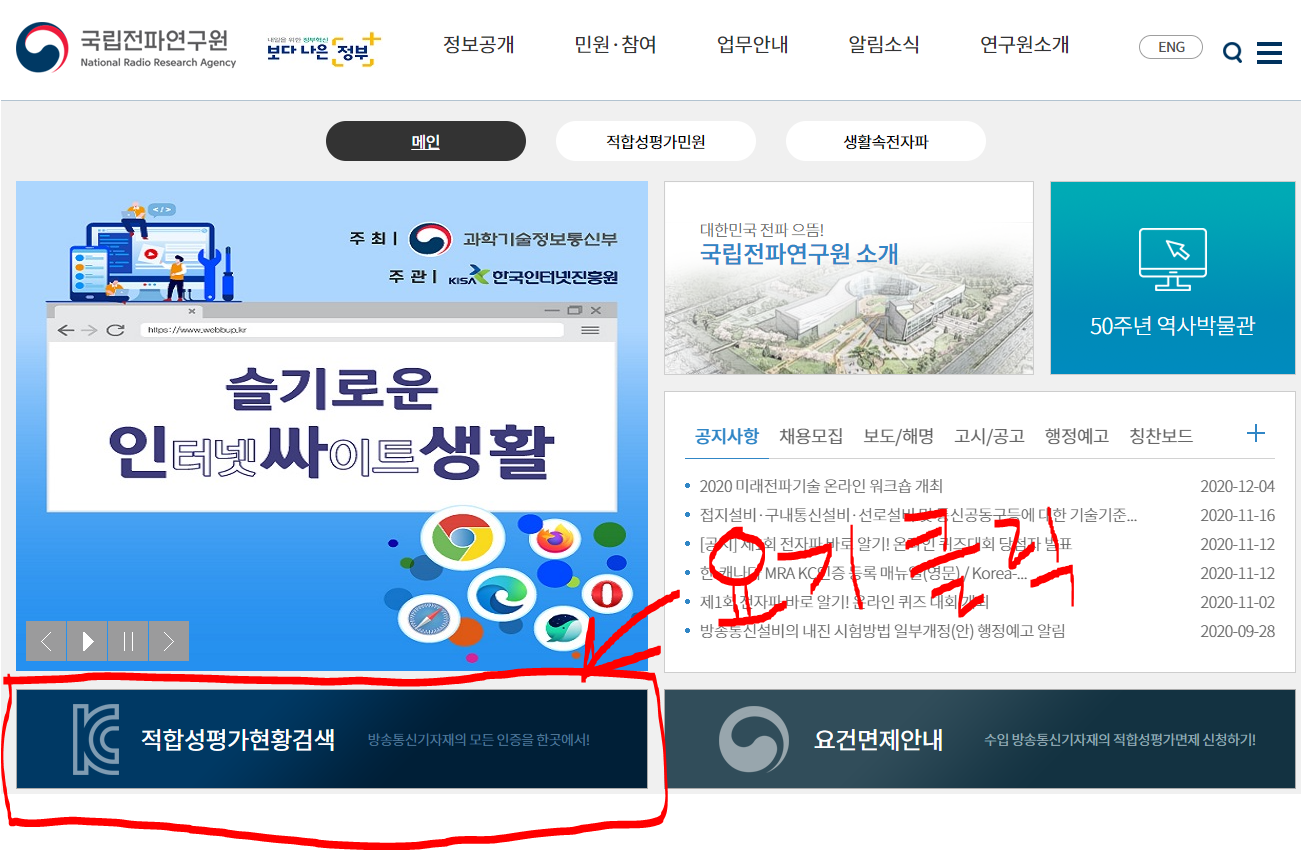 그럼 국립전파연구원에서 검색하는 법을 간략히 설명드리면