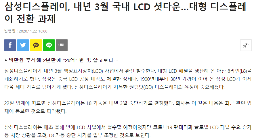 지금 LCD 패널업계는 어떤 상황인지 관련정보들을 모아보았습니다.